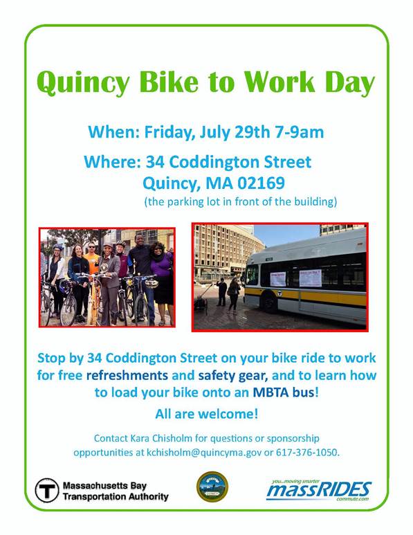 Join us Friday morning for Quincy’s first Bike to Work day.
