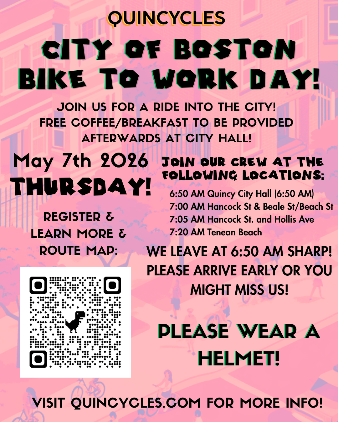 Our group will be riding through Quincy at several key points to pick up those who may join for the ride into the city – be sure to arrive at your desired meet up location a lil bit early so that you don’t miss our crew.